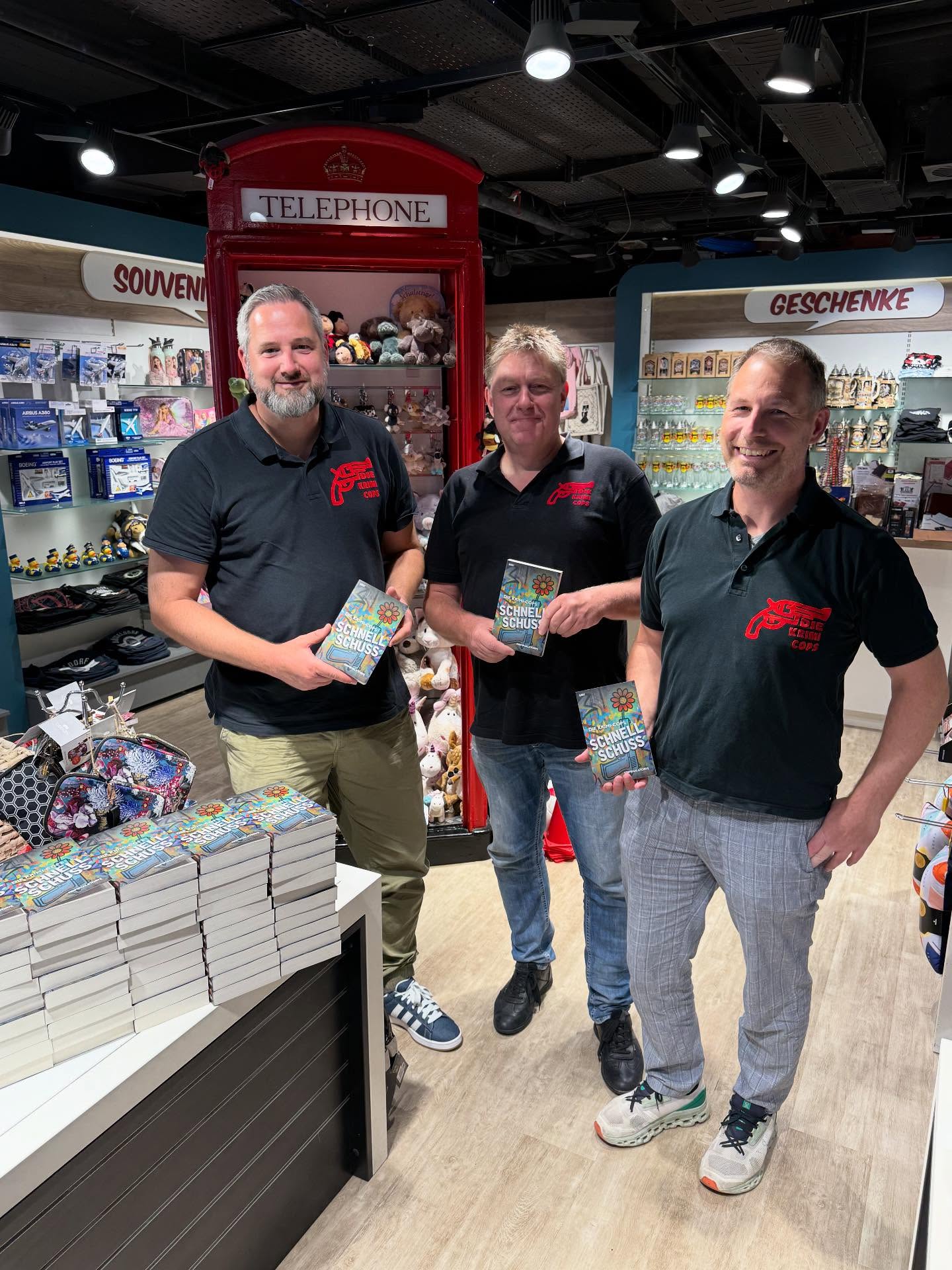 Ihr fliegt in den Urlaub? Müsst auf Geschäftsreise? Und noch keine Lektüre dabei? Kein Problem, bei Hollmann im Abflugbereich könnt ihr euch noch mit einem signierten Exemplar von Schnellschuss versorgen, wir haben heute einige Exemplare dort signieren dürfen.